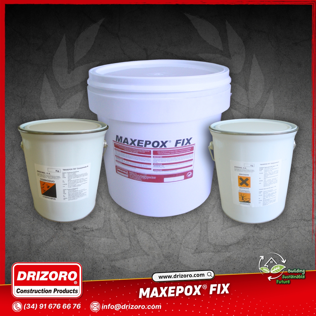 MAXEPOX® FIX es un mortero de tres componentes en base a resinas epoxídicas sin disolventes, diseñado para la fijación de anclajes y rellenos por vertido, con altas prestaciones mecánicas y excelente fluidez.